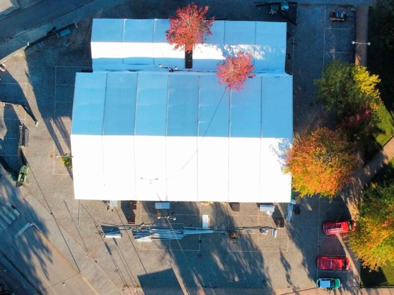 - Multistandard Tent 20m x 42,5m (850m2) with transparent covers and sidewalls.